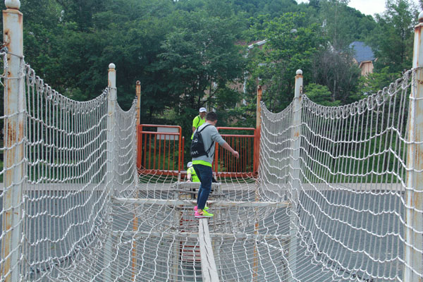 15日清晨,“浮天水送無(wú)窮樹,帶雨云埋一半山”經(jīng)過夜色雨水的沐浴,鍋盔山顯得格外迷人,我們一路觀賞著山間美色來到鍋盔山公園,公園里的拓展項(xiàng)目真是不少,同事們?cè)谝粋€(gè)個(gè)項(xiàng)目中體會(huì)到了汗水與快樂,一上午的光陰轉(zhuǎn)眼即逝,中午短暫吃完飯就向著哈爾濱方向出發(fā)。別了鍋盔山,你的美已經(jīng)留在了特通員工的記憶中。