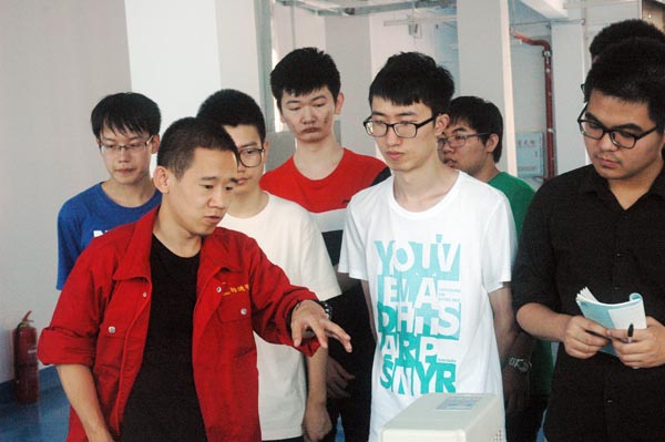 2017年7月13日, 黑龍江特通電氣股份有限公司市場(chǎng)部牛明部長(zhǎng)等代表公司熱烈歡迎哈工大電氣系張老師及工大電氣系即將畢業(yè)的學(xué)生。牛明部長(zhǎng)首先講解了公司的基本情況和未來(lái)發(fā)展。然后特通電氣研發(fā)部的陳晨部長(zhǎng)及研發(fā)員劉巍、席可心、李松帶領(lǐng)學(xué)生參觀了公司研發(fā)和生產(chǎn)制造中心,并耐心講解了特通電氣在電源領(lǐng)域里的技術(shù)特點(diǎn)和優(yōu)勢(shì)以及行業(yè)發(fā)展方向。