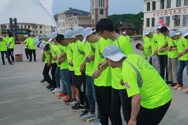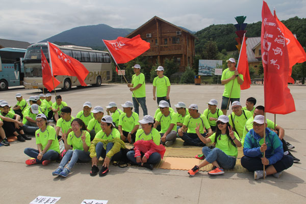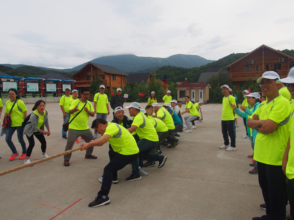 14日清晨,“微風(fēng)與腳步同行,陽(yáng)光共笑容一色”,亞布力鍋盔山我們來了,急切要投入青山綠水的懷抱,三個(gè)小時(shí)的車程,到了目的地大家下車首先看到的就是驚喜,我們住的是林區(qū)的木制別墅,房間里充滿了樹木的清香。大家放下包來到飯店,中午公司給大家準(zhǔn)備了可口的飯菜,大家不知是餓了還是農(nóng)家綠色菜肴的美味,吃得個(gè)快活逍遙。大家快速吃完飯就來到了拓展訓(xùn)練場(chǎng)地集結(jié)。